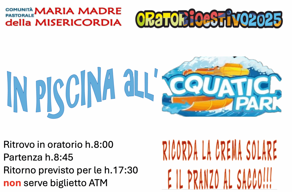 Per completare l’iscrizione è necessaria anche una COPIA del DOCUMENTO DI IDENTITÀ (o codice fiscale) DEL BAMBINO/A. Solo in questo modo potremo garantire la gratuità dei mezzi pubblici ATM come gruppo per raggiungere la piscina! Potrai mandarlo via mail all’indirizzo oratorio3m@gmail.com (FRONTE E RETRO, preferibilmente in un unico file formato PDF).